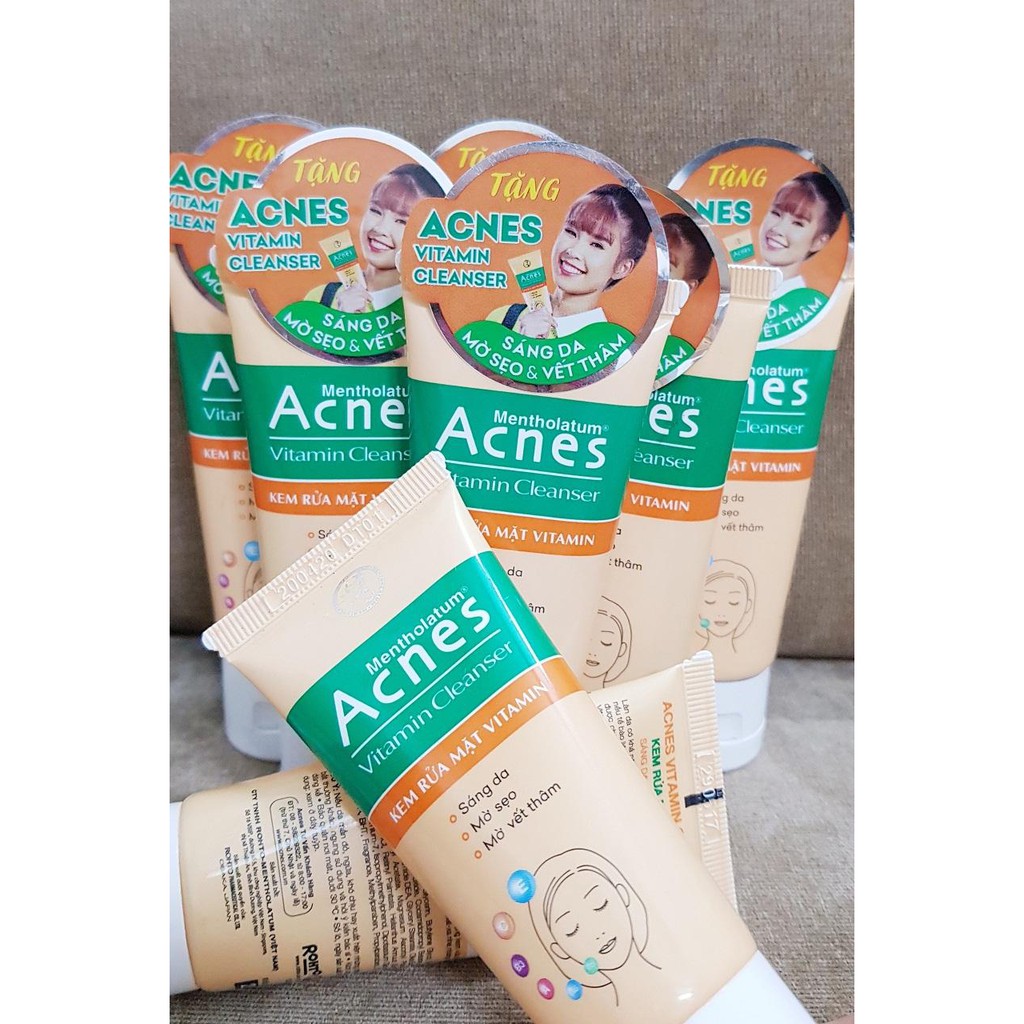 Acnes vitamin cleanser. Use Acnes Vitamin Cleanser to washes away dusts and pollutants. Acnes Vitamin Cleanser có mùi hương nhẹ nên không gây cảm giác khó chịu trong khi dùng. Acnes Vitamin Cleanser and Cream duo contains the benefits of essential vitamins that prevents acne bacteria helps in skin regeneration encourages the formation of new collagen and protects skin cell from damage caused by pimples.