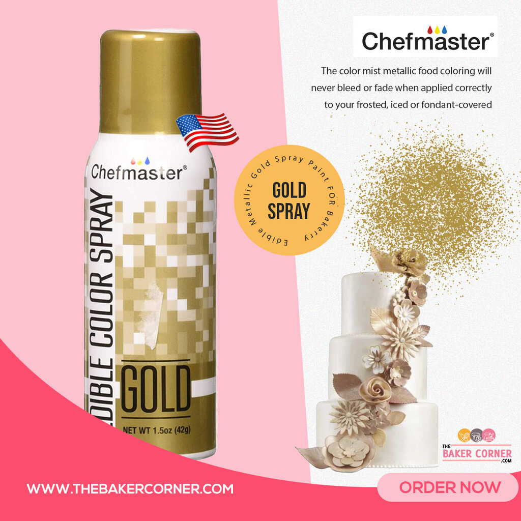 Edible Gold Spray Paint by Chefmaster. Our edible spray paint adds fun and vibrant colors to any creation. 5 out of 5 stars.