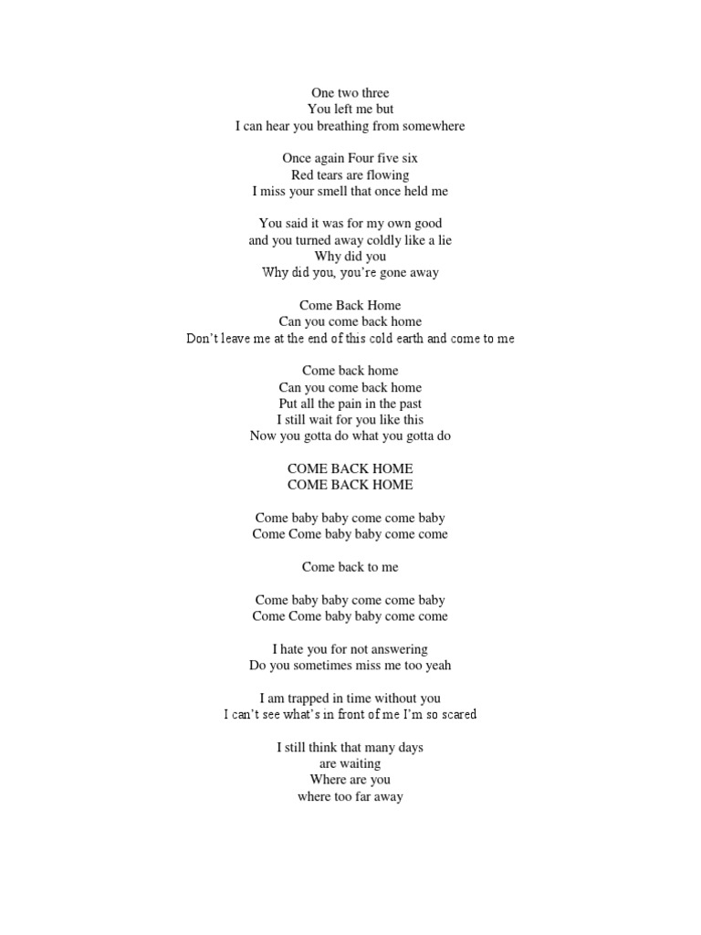 Available on iTunes Apple Music. 2NE1 - Come Back Home Romanized Lyrics. Baby come back any kind of fool could see There was something in everything about you Baby come back you can blame it all on me I was wrong and I just.