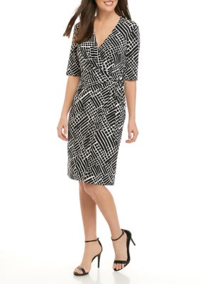 Geo Print Wrap Design Ruffle Hem Short Sleeves Style. Sometimes I think my stylist LOVE HER reads my mind. Wrap things up in this decadent Joseph Ribkoff dress featuring a geometric pattern and self-tie belt for flattering fit.